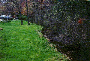 Buffer/Yard Waste/Runoff concerns: Lawn extends to stream, fertilizer, runoff concerns, (from lawn and parking area) NBWL2